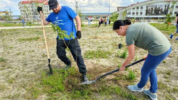 В Лабытнанге на субботнике в рамках Недели экологии убирали мусор и сажали деревья и кустарники, сообщила в своем Telegram-канале глава города Марина Трескова.