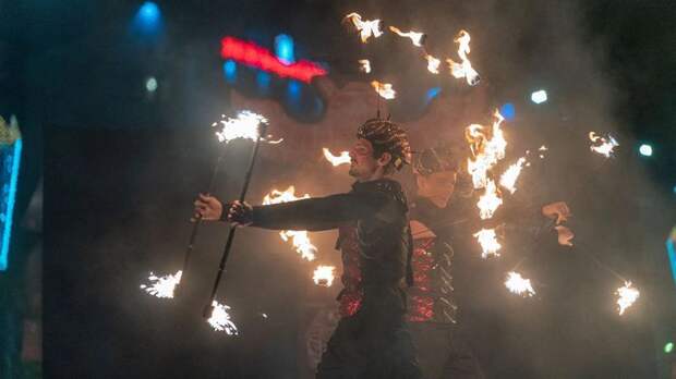 Выступление огненного шоу «Очень теплые коты» прошло на берегу городского озера, недалеко от пирса. Зрители увидели настоящее световое представление. Мероприятие было благотворительным. Оно направлено на добровольный сбор средств для лечения детей с ДЦП. В Салехарде вечером 27 сентября состоялось рекордное шоу дронов в честь 80-летия Победы. Над городом в небо поднялись 2500 квадрокоптеров компании «Геоскан». Самые важные новости — в нашем telegram-канале «Север-Пресс».